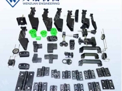 输送机械包装机械配件:支架、钣金支架、圆单轨夹、方单轨夹、圆双轨夹、方双轨夹、T型夹、小十字承夹、大十字承夹、感应器夹、T字接头、立字接头、方孔十字接头、圆孔十字接头、圆单轨接头、方单轨接头、支撑架、侧边锁头、联合三通架、脚架、脚套、框架弯头、门锁、玻璃导条、进瓶螺杆、活页、把手、水槽吊架、回路轮、平型垫轨、平铺衔接头、单/双固定接头、圆帽护栏、大C加铝轨护栏、平顶护栏、算盘护栏、滚珠过渡板、垫片、福来轮、万向球、流利条。